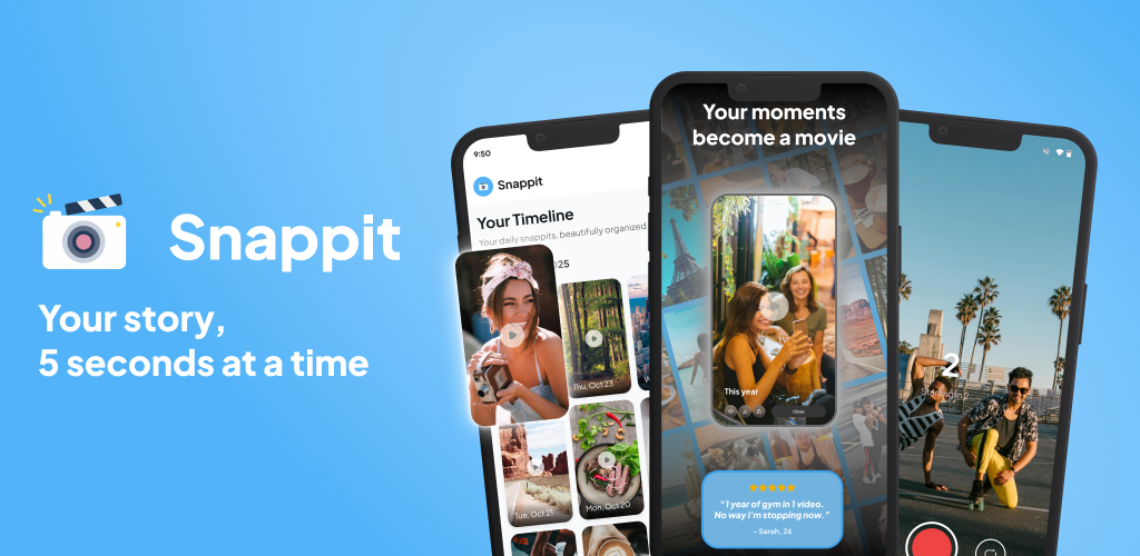 Snappit - Capture 5 seconds every day and watch your life unfold through automatic weekly, monthly, and yearly video montages.